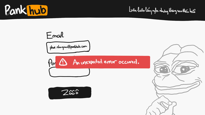 Bây giờ mình sẽ thử đăng nhập tài khoản của người dùng tên là Phát (jk, don't panic) với email là: phat.nhagiau@pankhub.com và password là password